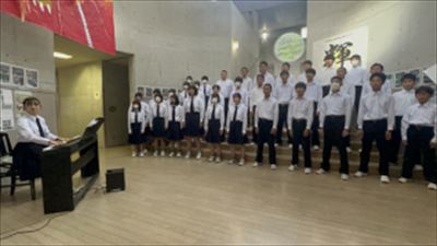 1人1人の合唱を輝かせることで全校合唱を輝かせるという思いを込めた「輝」をスローガンに、「ヒカリ」と「虹」を歌いました。これまで一生懸命練習してきた成果を発揮し、とても素敵なハーモニーを、会場中に響かせることができました。