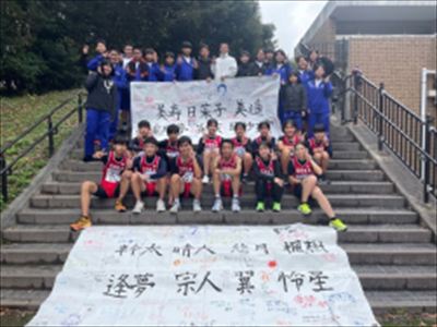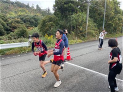 今年度は男女1チームずつ出場し、23名の生徒が応援として参加しました。選手は任された区間を一生懸命走り、襷をつなぎました。応援の生徒は、横断幕を作成し、全校生徒と教職員のメッセージと共に、全校一丸となってこの駅伝大会に臨むことができました。