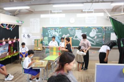 1年生は中村海水浴場に、3年生は西ノ島に行きました。海岸清掃をしたり、自然の中で遊んだりして、クラスの仲が深まりました。