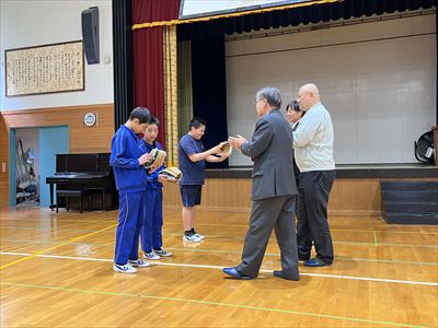 1月17日、五箇小学校にも「大谷翔平グローブ」が3個届きました。子供たちはテレビのニュースで知っていたので、今か今かと待っていたところでした。贈呈式があり、代表児童がキャッチボールをして、グローブの感触を確かめていました。誰でも自由に使うことができ、校庭でキャッチボールをしたり、ノックをしたりして遊んでいます。