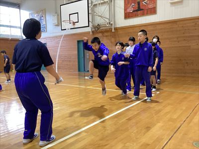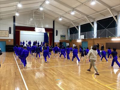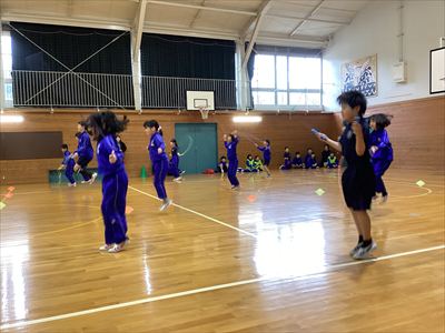 2月7日、校内なわとび大会がありました。色々な跳び方を決められた秒数生き残りで競争します。競争は、縦割り班ごとなので、各色応援にも熱が入りました。冬の間のパワフルタイムで行っていた、大繩での8の字跳びも跳んだ回数で競いました。1年生はやっと大繩が跳べるようになったばかり、そんな1年生を上級生が優しくサポートする姿があり、とてもステキななわとび大会となりました。