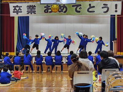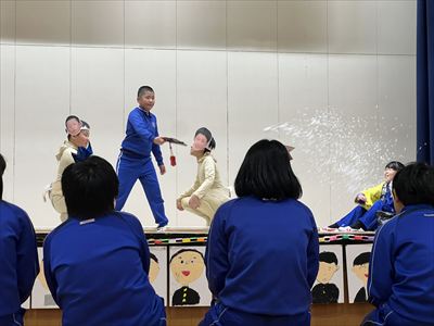 2月29日、さよなら集会(6年生を送る会)がありました。歌あり踊りありクイズあり劇ありと、それぞれの学年が6年生に楽しんでもらおうと工夫を凝らした出し物をしました。色別の6年生に在校生から感謝のメッセージを送ったり、5年生が作ったスライドショーを楽しんだりもしました。6年生が退場するときには在校生でアーチを作りました。感極まって涙する在校生もたくさんおり、みんなに愛された6年生のためのさよなら集会は大成功となりました。