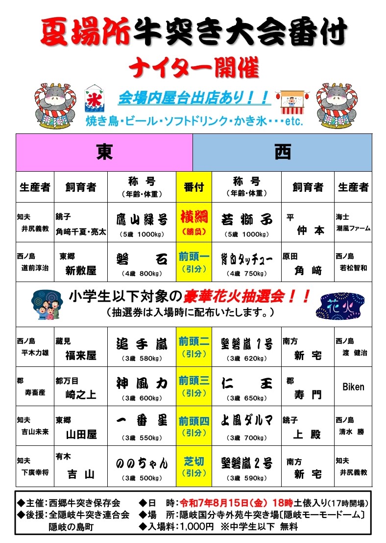 夏場所牛突き大会の開催について 8/15(金)