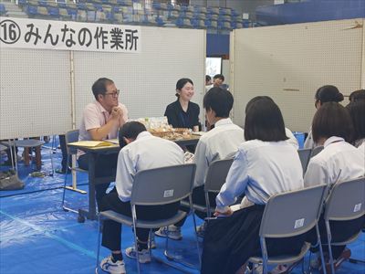 西郷南中学校の重点指導目標の一つがキャリア教育です。各学年で、様々な人と出会い、体験し、自分の生き方についてしっかり考える機会をつくっています。1学期は、1年生が「南中ミニジョブフェア」を開き、島内9事業所の方々に仕事内容や苦労、やりがいなどについて、たくさんのお話をしていただきました。2年生は「隠岐の島町ジョブフェア」に参加し、30を超える事業所から自分で興味のある職種を選び、説明を受けました。3年生は第2保育所の園児たちとの交流などを通じて、自分の視野を広げることのできた1学期だったと思います。2学期は体験学習も交えながら、さらにキャリア教育を進めていきます。