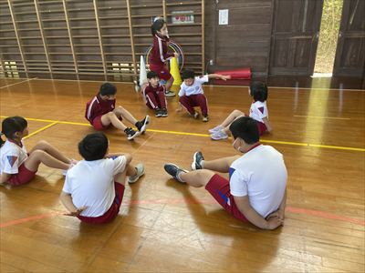 保育所の園児さんは、「やってみよう体操」が自分たちで踊れるようにふりつけを工夫し、本番はがんばって踊る姿がとても可愛いらしかったです。5・6年生との交流種目や、玉入れ、綱引き、リレーなど、一生懸命にがんばりました。