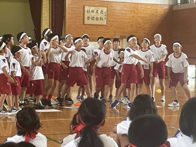 今年度は、「楽しんだもん勝ち~みんなが主役~」をスローガンとして、開催されました。本番までのところで、5・6年生はアピールタイム、3・4年生はスローガン幕の作成、1・2年生は応援グッズ作成を担当し、全校のみんなで準備しました。