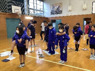 5月16日、第1会たてわり活動がりりました。1~6年生を8つの班に分け、それぞれの班で自己紹介をして、もっと仲良くなるために新聞じゃんけんをしました。上学生のお兄さんが下学年の子をおんぶしてあげたり、じゃんけんを下学年の子に譲ってあげたりと、ほのぼのとした始め式となりました。
