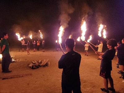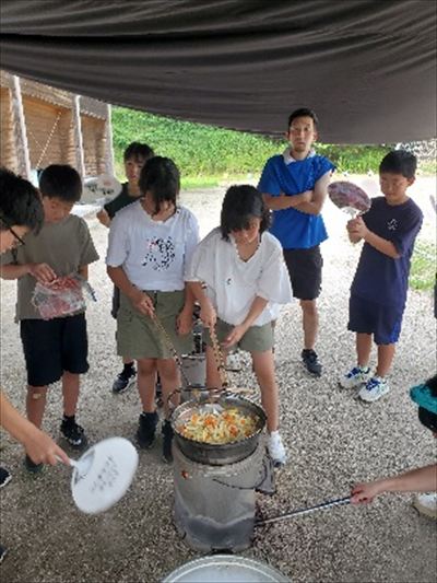 7月23.24日に5・6年生を対象に教育キャンプを行いました。例年、吉浦キャンプ場でキャンプをしますが、今年は猛暑と台風並みの強風とで学校でのキャンプとなりました。塩の浜でシーカヤックを楽しみ、学校に帰り校庭で火を起こし、カレー作り、キャンプファイヤーをしました。学校ということで、子供たちのリクエストもあり、肝試しも行いました。昨年経験した6年生も学校でのキャンプは初めての経験でしたが、5年生をリードして、みんなが楽しいキャンプとなりました。