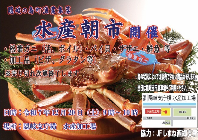 隠岐の島町漁業集落水産朝市の開催について 12/20(土)