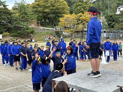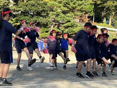 11月7日、ふれあい運動会がありました。今年の運動会のテーマは、「笑顔 応援 協力」でした。1年生の選手宣誓に始まり、ごか保育園の年長・年中児さんやお年寄りの方やペア学年とのふれあい競技、低中高学年での競技と、いろいろな人とふれあいながら行われました。