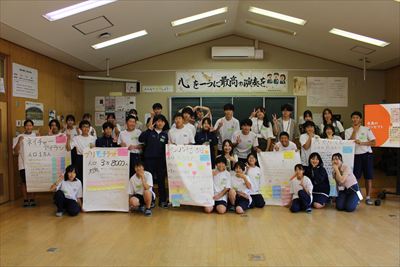 8月27日に関西学院大学の学生が来られました。グループの中で、人口減少や災害、地球温暖化、土地開発などの視点から、中学生らしいユニークな発想で理想の島を設計しました。