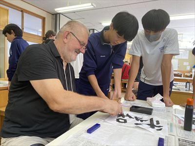 9月13日に、ポーランド交流学習を行いました。ポーランドの力士に、ポーランドの相撲について教わったり、一緒に習字をしたり給食を食べたりして、楽しく異文化を学びました。