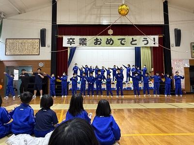 3月19日、卒業式があり、17名の6年生が卒業しました。6年生の別れの言葉は、「将来なりたい職業・そうなるためにどうするか」などを一人一人が気持ちを込めて発表しました。会場中が温かい雰囲気に包まれた中、6年生は退場し卒業式しました。