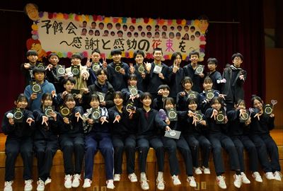 3月7日(金)に1・2年生が初めて自分たちで企画・準備した3年生を送る会が開かれました。各部活動の出し物や思い出のスライドショーなど、1・2年生の「お世話になった3年生に喜んでもらいたい」という気持ちの伝わる心温まる会になりました。3年生が心から楽しんでいる姿が印象的でした。