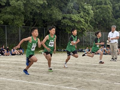 競技では、6年生の選手宣誓で記録会が始まり、100メートル走や長距離走、リレーなど、自分のベストを出そうと一生懸命走る姿が見られました。また、学年関係なく選手を応援する姿も見られました。子どもたちが練習の成果を発揮しただけでなく、子どもたちの素敵な姿が見られた記録会となりました。