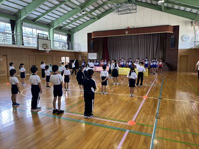 入学間もない1年生がもっと学校に慣れるように、6年生が企画して実施しました。入退場は6年生と一緒に会場を歩きました。インタビューをしたりゲームをしたりして、全校で一緒に楽しい時間を過ごしました。これからも、どんどん仲を深めていってほしいと思います。