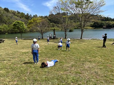 水鳥公園では、満開の八重桜の下で弁当を食べたり、縦割り班で一緒に遊んだりしました。これから様々な時間を共にしていく友達との素敵な思い出の一つとなりました。