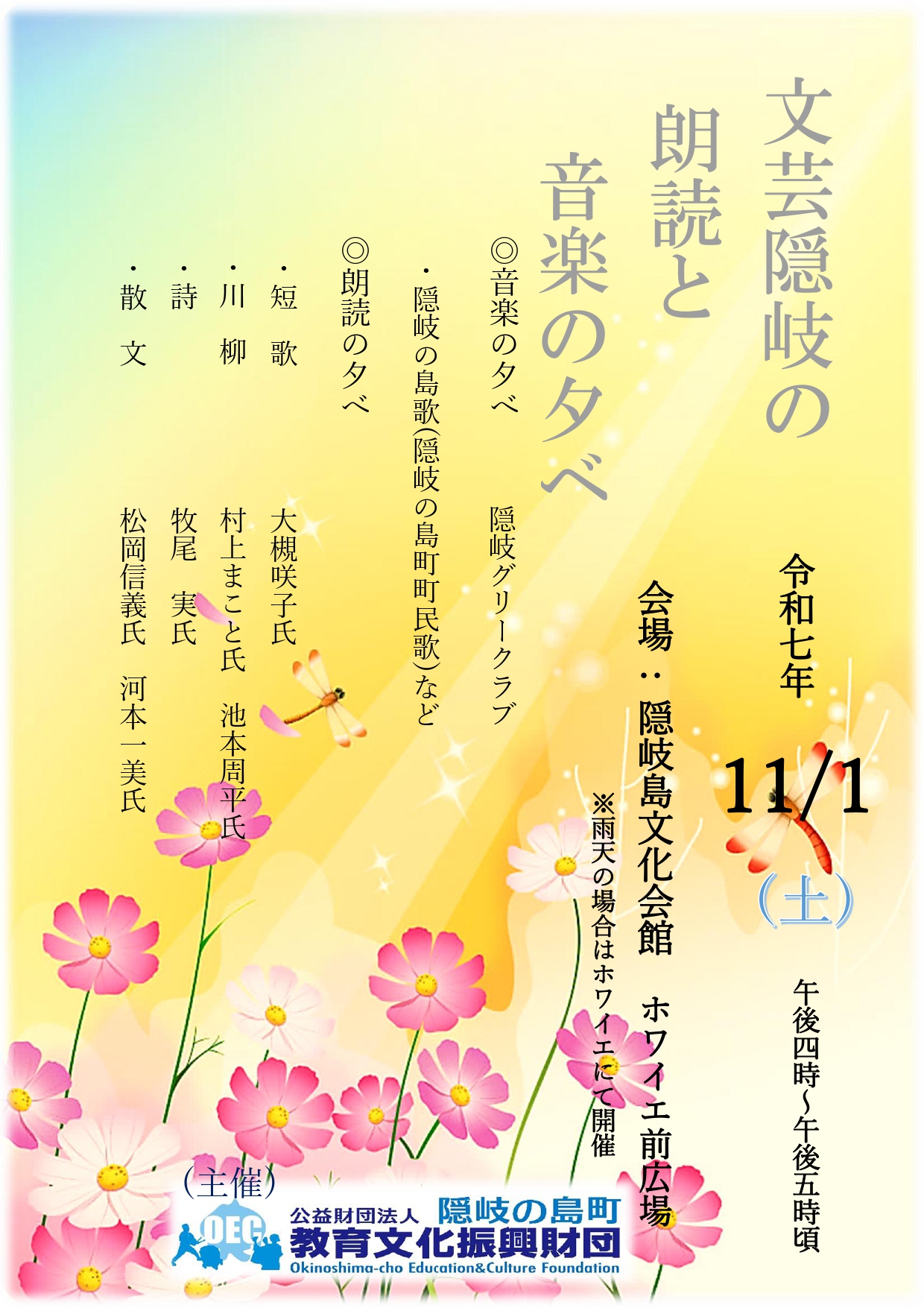「文芸隠岐の朗読と音楽の夕べ」の開催について 11/1(土)
