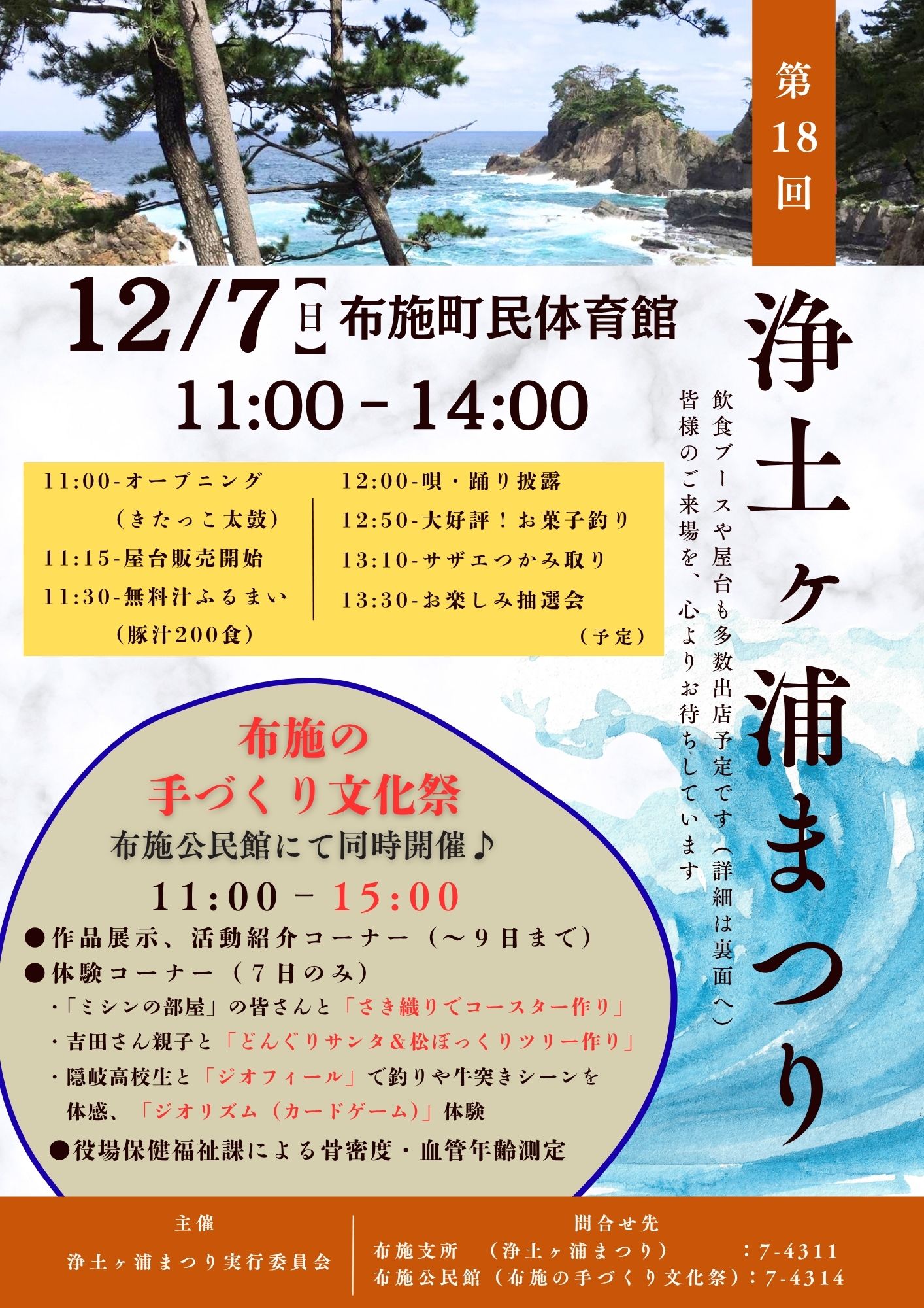 第18回浄土ケ浦まつり及び布施の手づくり文化祭の開催について 12/7(日)