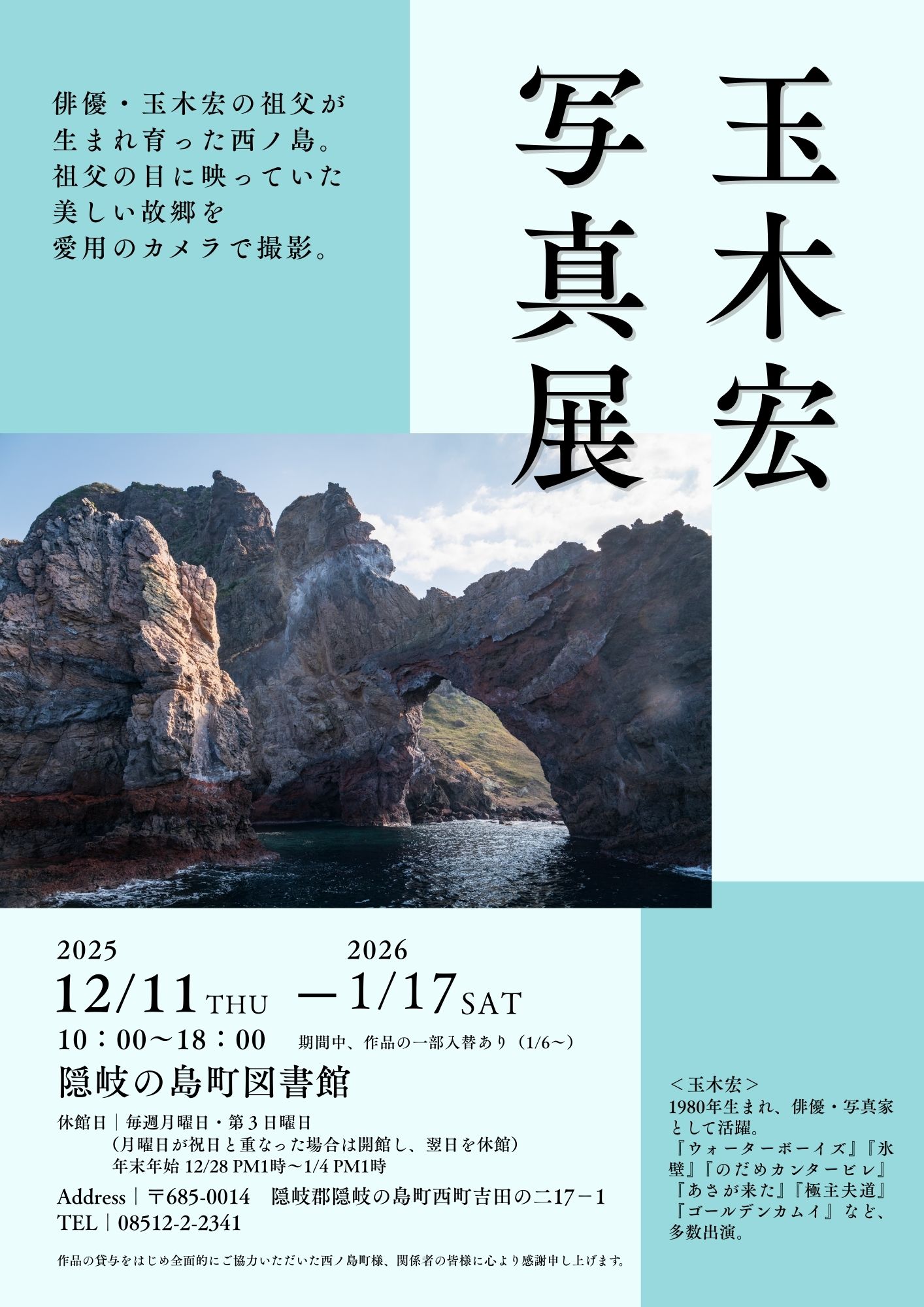 俳優・玉木宏さんが撮影した写真の作品展を、隠岐の島町図書館で開催中です。