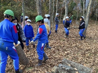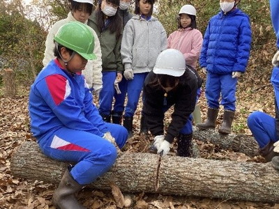 本校では、NPO法人隠岐しおさいの岡田智子さんと前地域コーディネーターの森口光春さんにお世話になり、みーもスクール事業(森の大切さを子供たちに伝えるとともに、郷土を愛する心を育むための森林教育)を行っており、低・中・高学年ごとにテーマが設定してあります。5・6年生は、里山林業体験学習と題し、伐採体験やノコギリ体験、椎茸の植菌体験や椎茸の収穫と食体験などをしました。テーマを「命を守る」とし、自分の命と友達の命を守ることを意識しながら、3回の活動を行いました。木を切り倒したり、椎茸の菌を植えたりする体験のほとんどが普段できない体験となっています。また、採れた椎茸に自家製味噌を付けて焼いて食べるおいしさなども味わうことができました。天候にも恵まれ、貴重な体験となり子どもたちの満足そうな表情や真剣な顔をたくさん見ることができ、有意義な時間となりました。