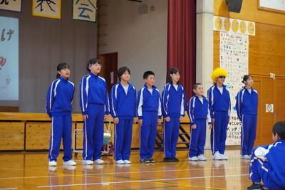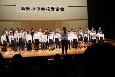 10月23日に島後小中学校音楽会が行われ、3~6年生46名で、「ひととひと」という曲を合唱しました。9月のはじめに、「みんながきれいな声をだして感動する音楽会にしよう。そのために発声練習から一生けん命やる、先生が言ったことを実行できるように意識する」という目標を3名のリーダーが掲げ、練習がスタートしました。各学年での音取りに加え、バスケット交流会が終わってからは週に2回の音楽の授業と放課後練習を行い、磯小学校の伝統である「きれいな歌声」を目指して取り組みました。本番では人との出会いの大切さを歌ったこの曲のまっすぐな歌詞に込められた思いが子どもたちの歌声によってしっかりと伝えられた素晴らしい合唱となりました。