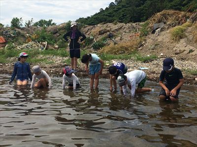 今日ぼくは、あんなにいっぱいの青のりが見つけられるとは思わず、最初はびっくりしました。あんなに多くなるなんて思わなかったので「都万の自ぜんってすごいんだなぁ。」と思いました。ぼくは、何回もこけそうになりました。でも、べこやたまごを見つけることができてうれしかったです。