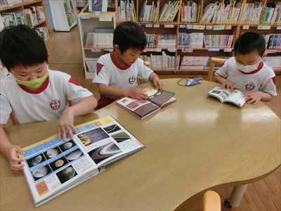 都万小学校では、多くの子が、気軽に、本を読みに来たり借りに来たり、調べ物をしに来たりできる図書館を目指しています。そのための取り組みとして、1学期は「訪れたくなる本のレイアウト」「毎朝の朝読書」「ボランティアさんによる読み聞かせ」「図書委員会の取り組み」「貸し出し冊数のお伝え」「各学年おすすめブックリスト」「金曜日の本を借りようデー」「図書館オリエンテーション」などを行ってきました。これらによって、(7月の休み時間の図書館が多くの子でにぎわっている様子)(どの学年にもたくさんの本を借りる子がいる)(冊数は少ないけどその一冊をじっくり楽しんで読む子もいる)(7月には多くの子が6月よりも貸し出し冊数が伸びた)(知らない植物や生き物を見つけるとちょっと図書館に行って調べる子がいる)(授業で図書館の本を活用している)など、児童の本に親しむ様々な姿が見られています。2学期も引き続き、さらに本を借りて読みたくなるような、授業で活用したくなるような図書館を目指していきたいと思います。