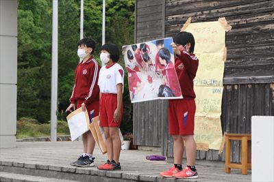 私は今回キャプテンとして4から6年生をうまくまとめられるか心配でした。初めての練習では、すごくきんちょうしてあまり声が出ませんでした。でも恭佑君や悠飛君(男子キャプテンの2人)が声出しをしてくれて、後半の方は自分から声をかけられるようになってきました。すると、より練習の雰囲気がよくなり、きつい練習でも「楽しい。」と言ってくれる人が増えてきました。みんなのタイムも伸びてきて、キャプテンをやってよかったなと思いました。4年生は、初めてなのに声を出してくれました。5年生は、まるで6年生かのように4年生に教えてくれました。6年生は、キャプテンのサポートをしてくれました。今回の活動で、6年生らしい働きができたのがよかったです。