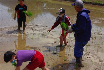 田植えをさせてもらって、一から米を作ることは大変だと思いました。手より機械で植える方がきれいで、速くできると分かりました。井川さんに田植えを経験させてもらってよかったです。