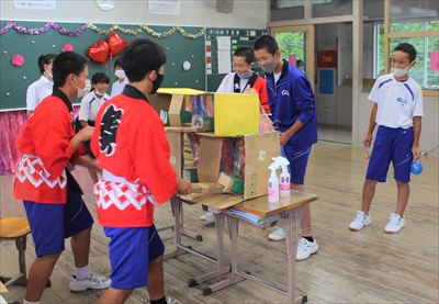 生徒会が企画した生徒会祭、新型コロナウイルス感染症対策を十分にしたうえで活動に取り組みました。午前は各学級で企画した出し物を行い、学年問わず交流を深めることができました。午後は体育祭を行いました。2つの組に分かれて、夏休み中から時間をみつけて取り組んできた様々な準備や練習の成果を、互いにぶつけ合い、熱戦を繰り広げました。
