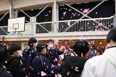 3月4日(金)に3年生を送る会がありました。1、2年生が一致団結して準備を行い、3年生の思い出に残るような素晴らしい会になったと思います。リーダーを中心に、全員が3年生のために一生懸命に頑張ることができ、3年生にもその思いが伝わったと思います。3年生も本当にいい表情をしていました。