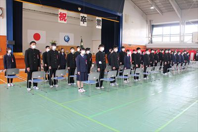 3月10日(木)に令和3年度卒業証書授与式が行われました。式の中で、前生徒会会長が読み上げた答辞は、3年間の思い出と仲間たちや保護者の方々、先生方への思いが詰まったとても感動的なものでした。また、式の最後の校歌では、涙で歌が歌えなかった卒業生もいましたが、その分在校生が大きな声で歌い、卒業生をしっかりと送り出すことができました。卒業生の進路は様々ですが、それぞれが進んだ道の先で活躍することを願っています。