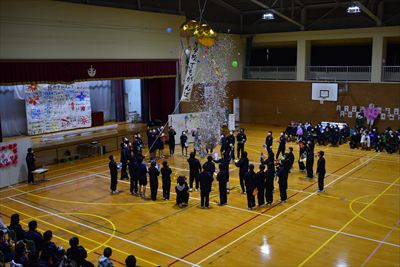 各学年が作成した会場の飾りに囲まれて「6年生を送る会」が開催されました。6年生に「ありがとう」を伝えるために、送る会の内容を一から考えた5年生、それに応えてくれた1~4年生の姿からは6年生への感謝の思いが十分に伝わってきました。感染症対策を講じての開催となりましたが、6年生も笑顔いっぱいの会になりました。