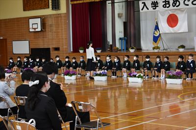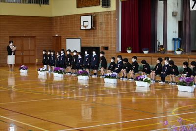 4月12日に入学式が行われました。新型コロナウイルスの感染拡大防止の観点から、学級ごとに体育館で式を行いました。1年生は担任の先生の呼名に元気よく返事をし、入退場もしっかりと歩くことができました。在校生の参加ができなくて残念でしたが、西郷小学校に新しい仲間が増えました。