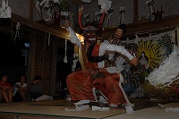 昭和25年に東郷の社家村上家から西村地域へと伝授され、現在ではお盆に合わせて8月14日に