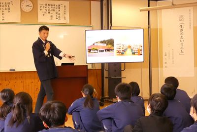 様々な分野や場所で活躍されている方々の講演会を行いました。11月29日には、吉崎工務店の吉崎英一郎様に『生きることについて』と題して、12月18日には、島大附属病院総合診療医センター長の白石吉彦様に『隠岐でうまれた君たちへ』と題してお話をしていただきました。