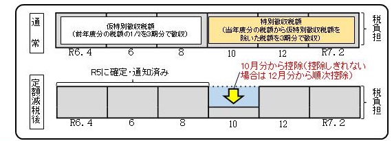 ※令和6年度から新たに年金特別徴収が開始される場合は、第1期分(令和6年6月分)および第2期分(令和6年8月分)は普通徴収の方法による減税を実施し、減税しきれない場合は、令和6年10月分以降の特別徴収税額から順次減税します。