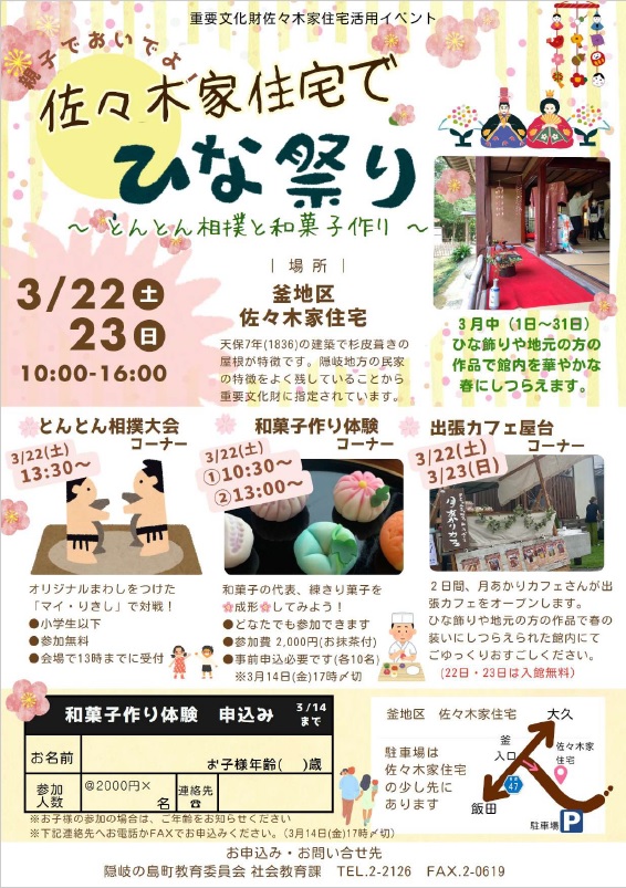 隠岐の島町釜地区にある、重要文化財佐々木家住宅を活用してイベントを開催します。