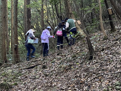 11月6日には、ヤマネ・いきもの研究所所長の湊先生・饗場さん、隠岐世界ジオパークツアーデスクの方をはじめ地域の方々のお世話になり、ヤマネの森へ出かけました。