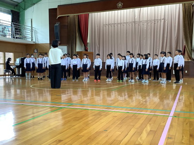 6年生のリーダーを中心に「きれいな歌声」「笑顔」「ハーモニー」などをキーワードに練習を重ねました。迎えた晴れの舞台では、緊張の中、きれいな歌声を響かせることができ、満足感や達成感を味わいました。